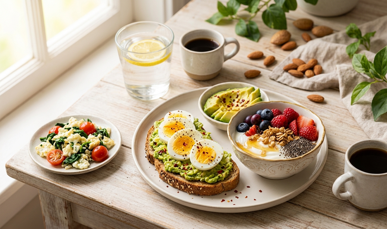 💡 أمثلة عملية: بيض في الفطور، صدر دجاج أو سمك في الغداء، زبادي يوناني أو مكسرات في وجبة خفيفة. استهدف 1.2 إلى 1.6 غرام بروتين لكل كيلوغرام من وزنك يومياً.
